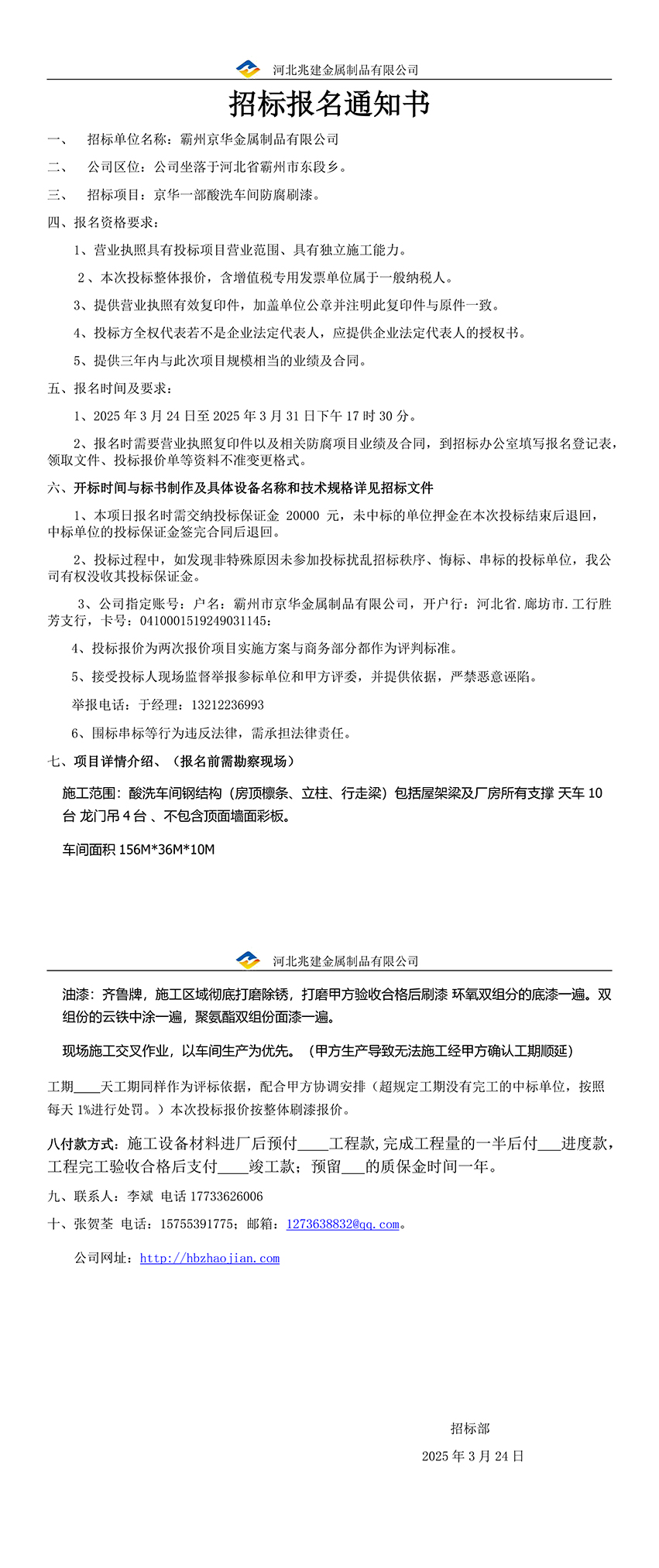 - 招標(biāo)業(yè)主: 河北兆建金屬制品有限公司